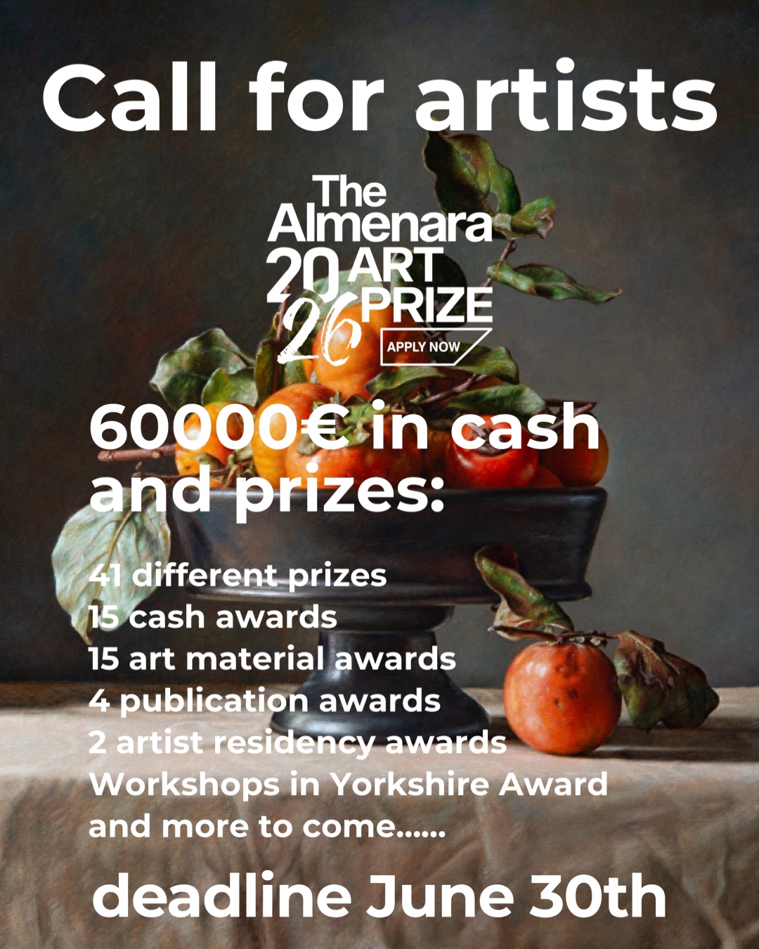 <p><strong>Арт-премия Альменара</strong> — это международный онлайн-конкурс живописи, который предлагает денежный приз в сумме до <strong>30 000 €</strong>, а также призы в виде художественных товаров в сумме до <strong>30 000 €</strong>. Арт-премия Альменара поощряет участие художников из разных стран и работающих в различных жанрах, стилях, техниках и материалах, включая гиперреализм, фотореализм, современный реализм, сюрреализм, воображаемый реализм, импрессионизм и пленэрную живопись.</p>